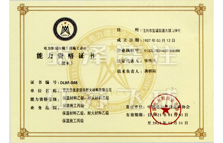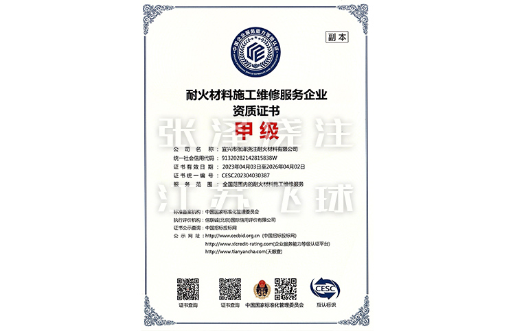 耐火材料施工維修服務(wù)企業(yè)資質(zhì)證書甲級(jí)